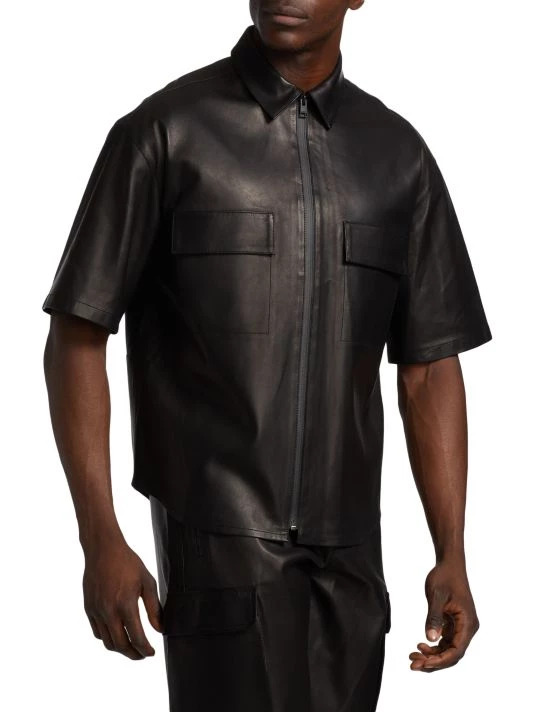 Cut from luxe lambskin, Frame’s leather zip-up shirt features bonded seams for a clean finish.