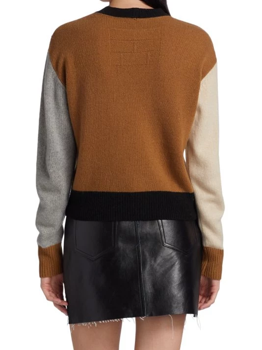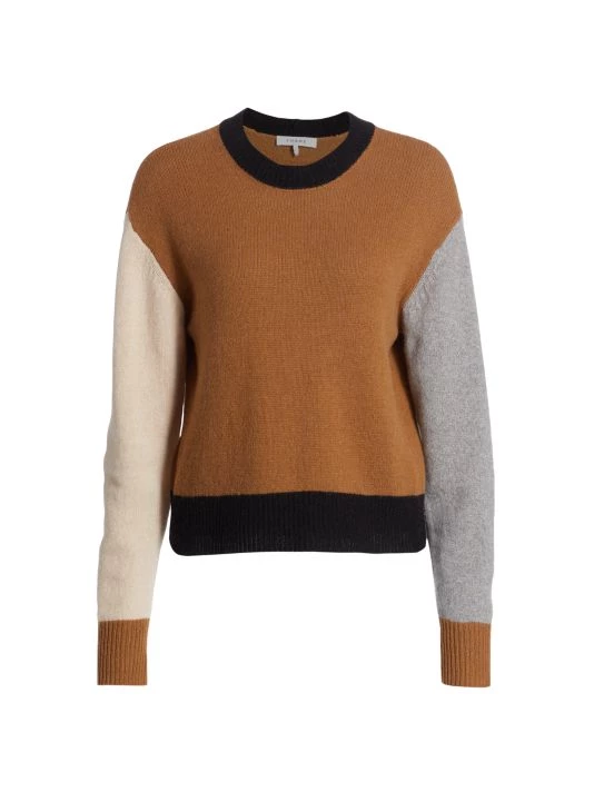 Modern crewneck sweater with colorblocked design, crafted of a cozy cashmere-wool blend.