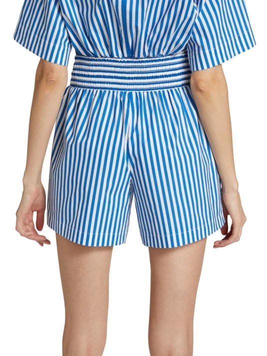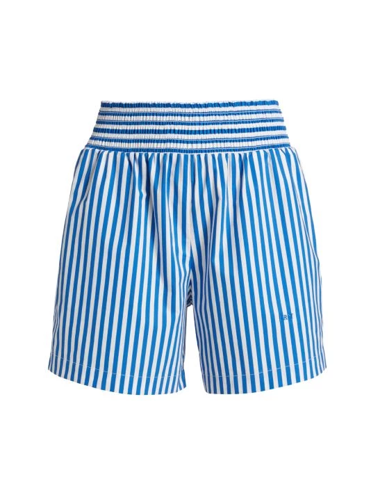 These Frame high-waisted striped shorts feature a classic stripe pattern and an easy pull-on waistband. The style is finished with side seam pockets and the brand’s embroidered initial monogram at the left thigh.