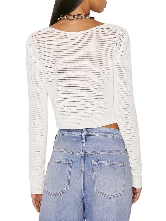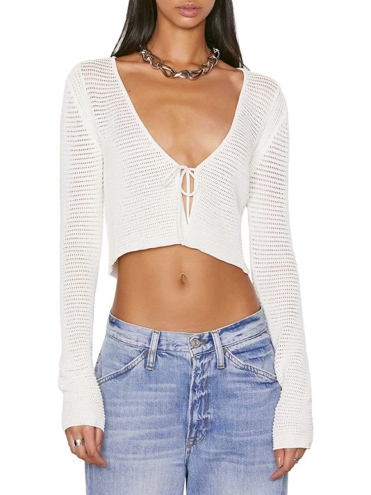 This Frame crop top is designed in a crochet knit with a front tie detail.