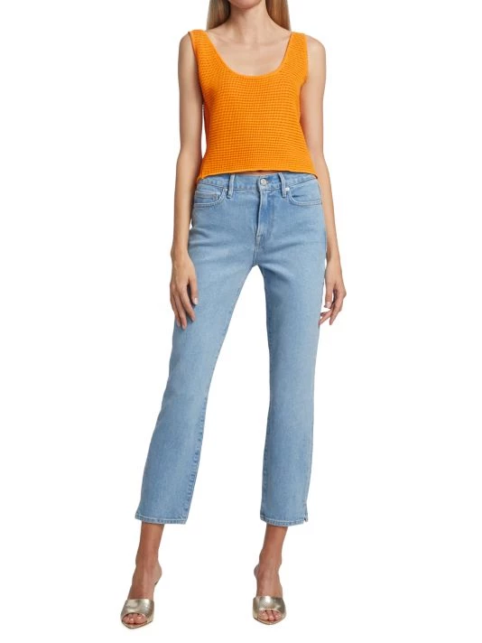 This fitted tank top by Frame is crafted of crochet knit fabric with a scoopneck.