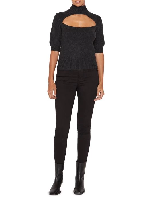 This cashmere-blend short sleeve sweater is finished with a wide chest cut-out and rib trim.