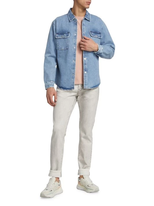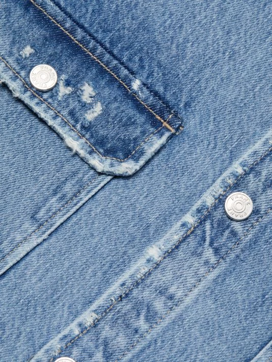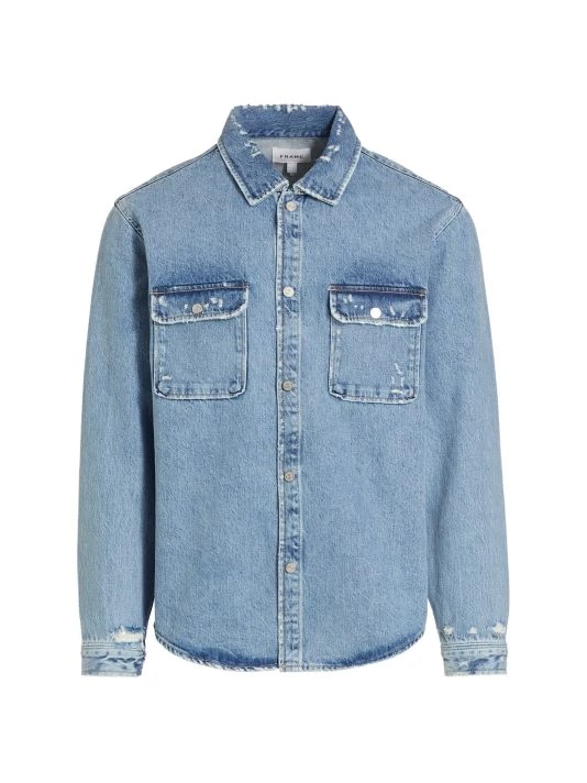 Styled with chest-flap pockets, this denim jacket is finished with slight distressing and silvertone hardware.