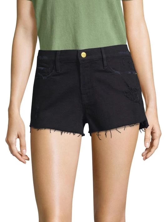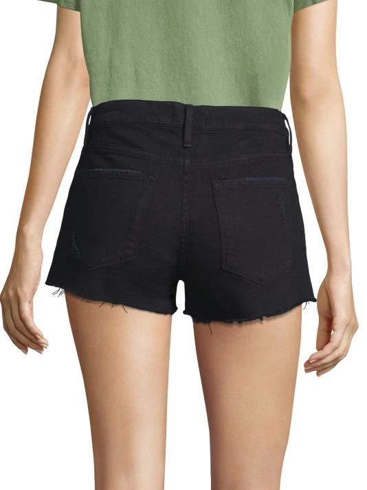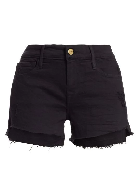 Classic denim shorts boasting a raw-edge, cutt-off finish.