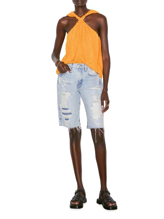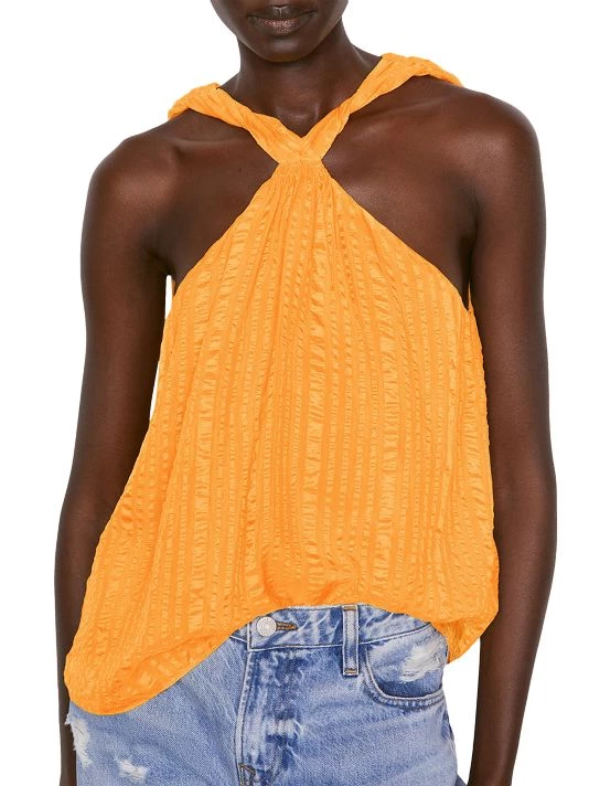 This draped halter top by Frame is crafted of textured cotton with a front twist detail.