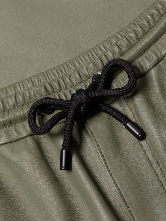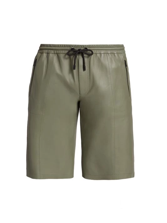 Crafted of leather, these Frame shorts feature a drawstring waistband, side zipper pockets, and a back patch pocket for contemporary appeal.