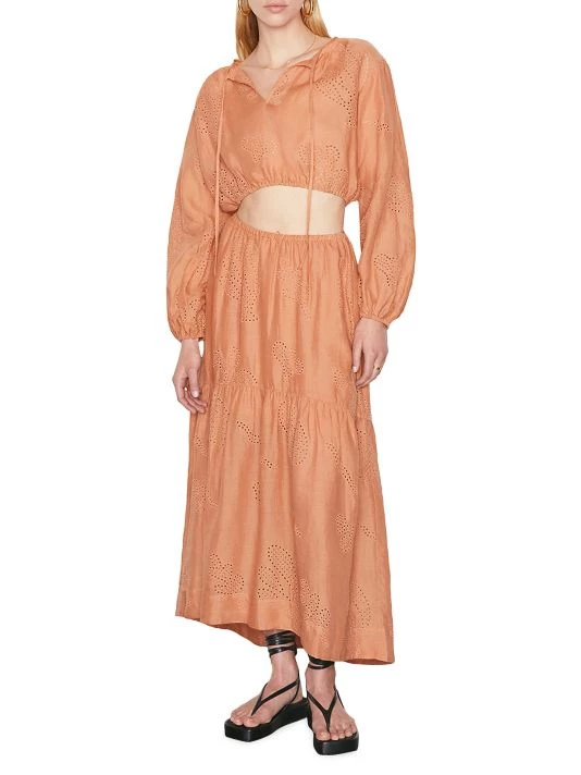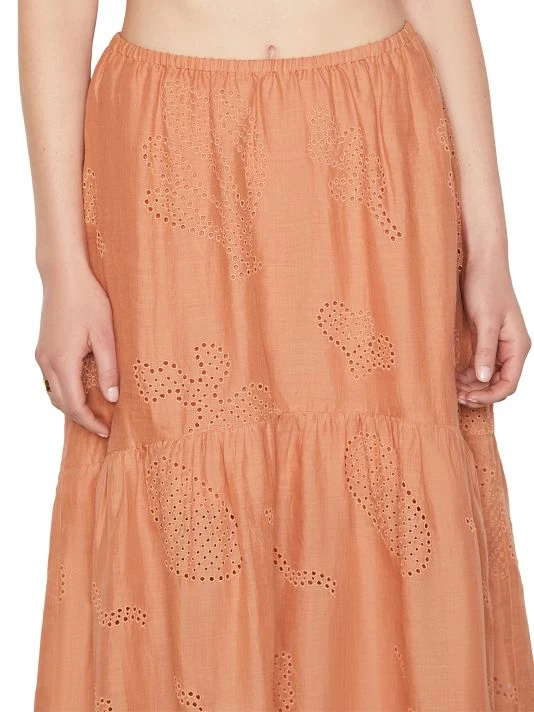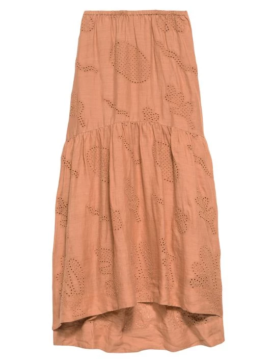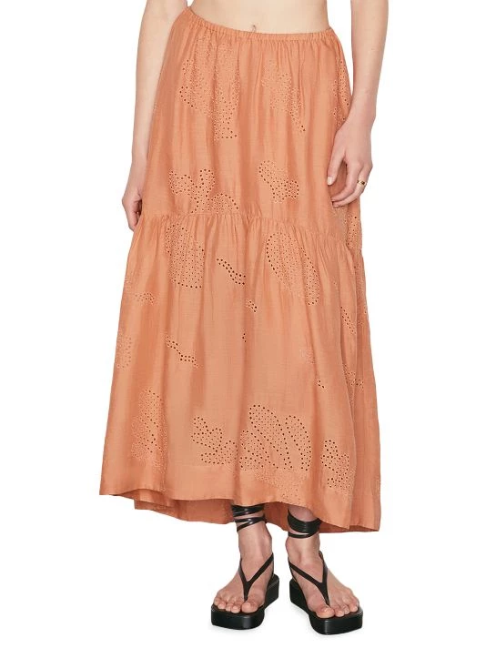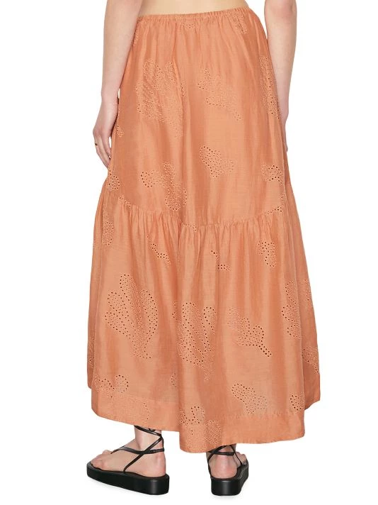 Crafted of breathable linen, Frame’s maxi skirt is designed with intricate eyelet embroidery. This asymmetrical piece is finished with a tiered hem.