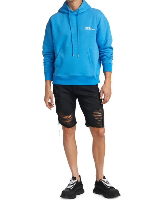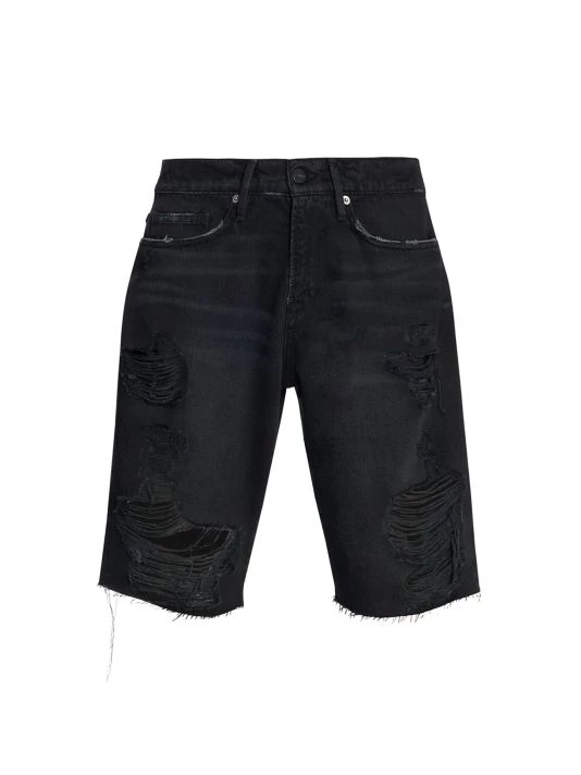 Rip detailing shapes these five-pocket denim shorts, crafted with a slim fit to the knee.