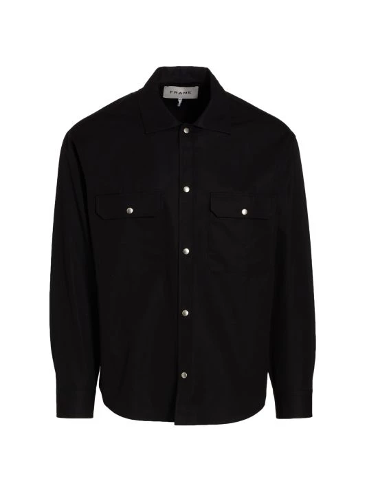 This cotton overshirt features flap pockets and is finished with a front-snap closure.