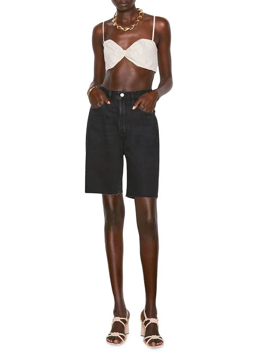 Frame’s denim Bermuda shorts are styled with a high-rise and a raw-edge hem.