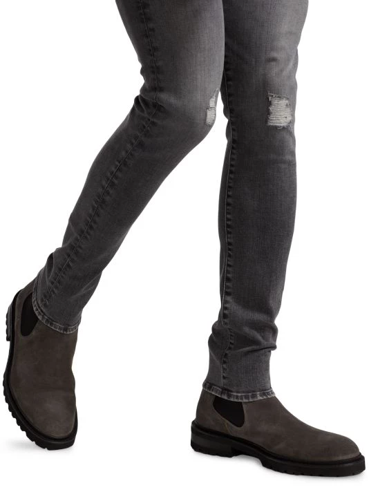 Distressing lends a lived-in feel to Frame’s Jagger True Skinny jeans, cut from organic cotton with a bit of stretch for shape.