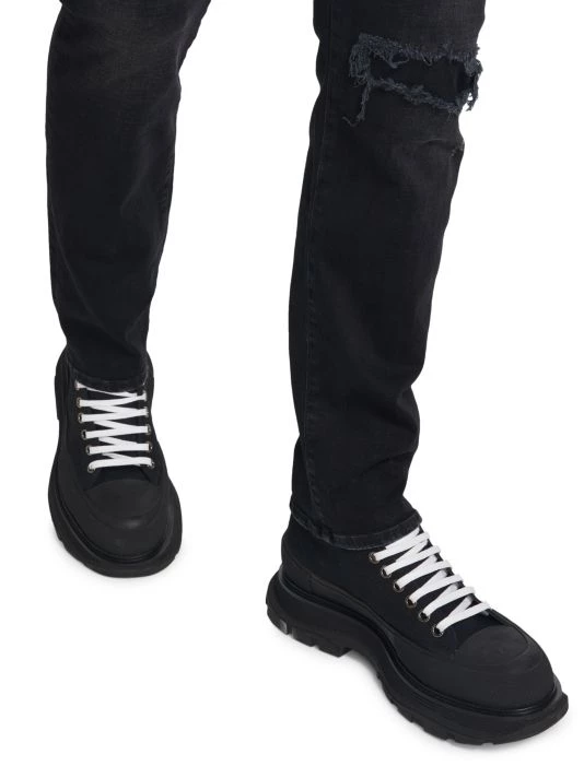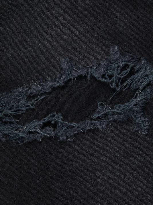 These slim-fit jeans are in a five-pocket silhouette designed with an intentionally faded finish and a distressed accent on the front.