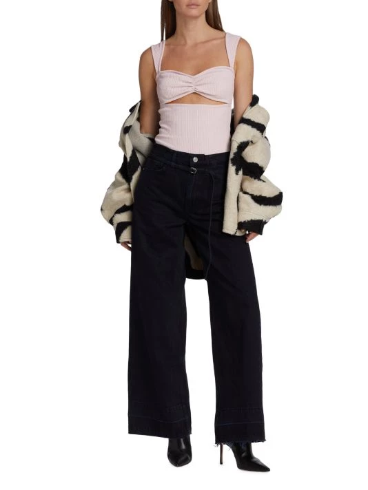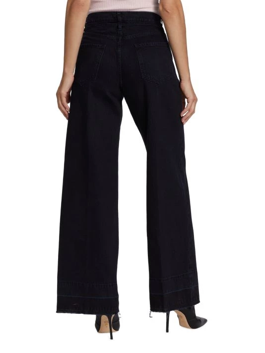Crafted of rigid denim, Frame’s Le Baggy jeans feature a high-rise waist and an exaggerated palazzo leg. This clean-front style is accented with silvertone hardware.