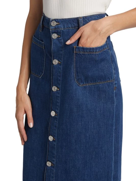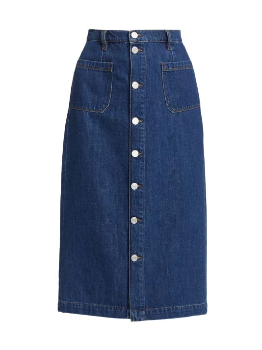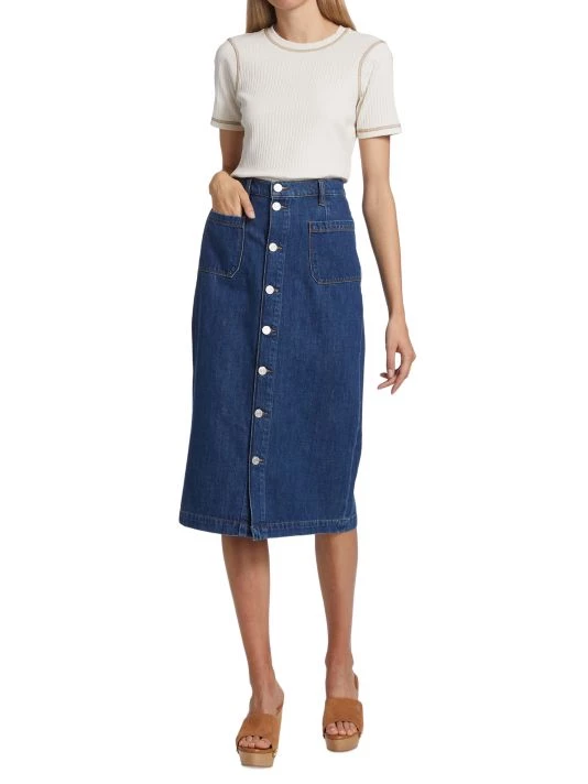 Crafted of denim with contrast stitching, Frame’s Le Bardot midi skirt is detailed with exposed button closure.