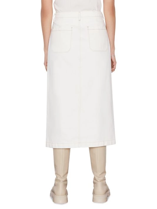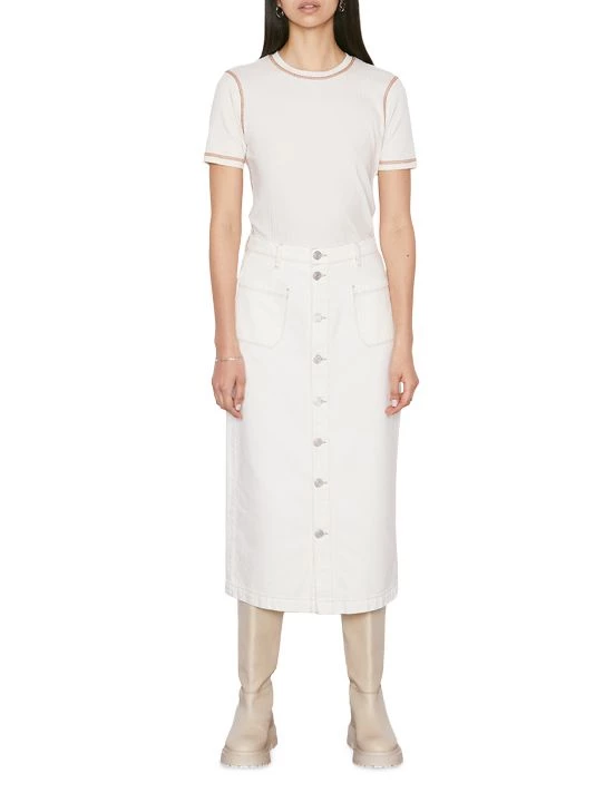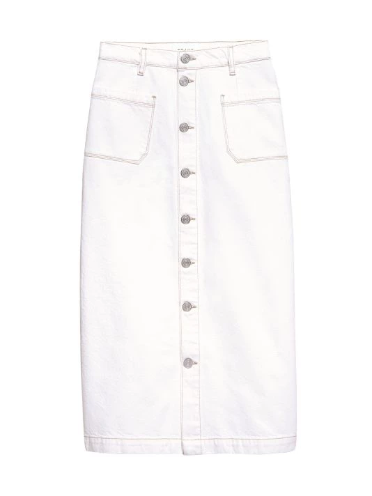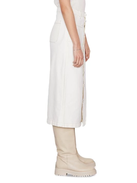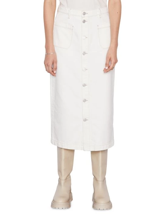 Exposed buttons lend vintage appeal to Frame’s Le Bardot denim pencil skirt.