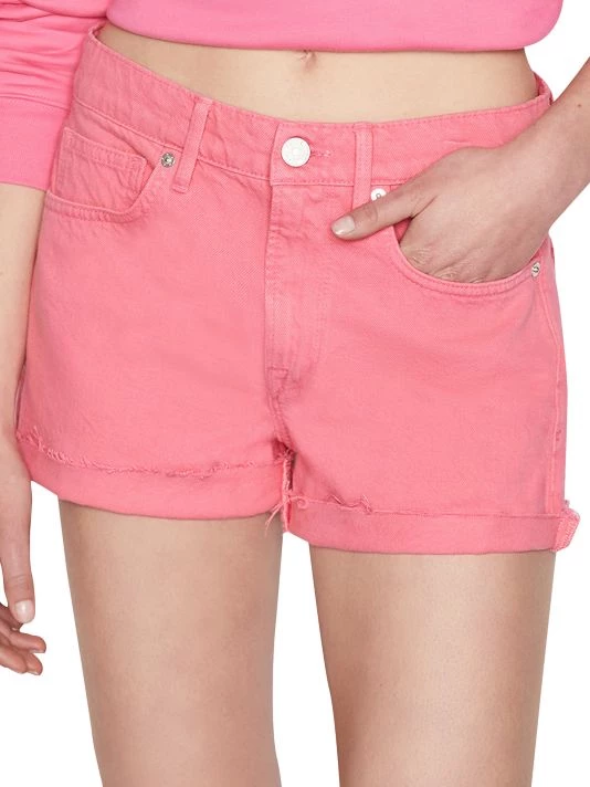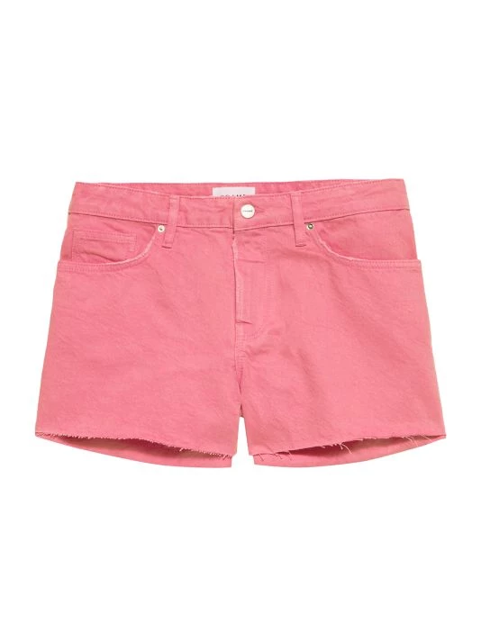 Frame’s Le Brigette rigid denim shorts feature a classic mid-rise waist. Raw-edge hems finish this bright style.
