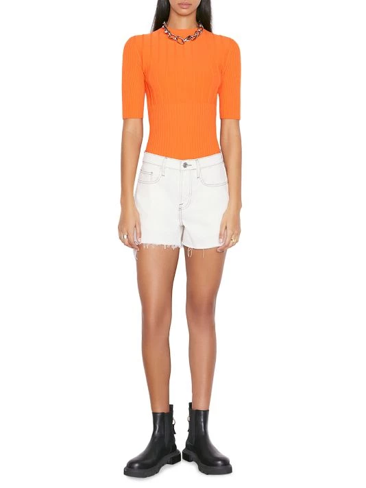 Crafted of denim, these shorts are elevated by a raw hem and contrast topstitching.