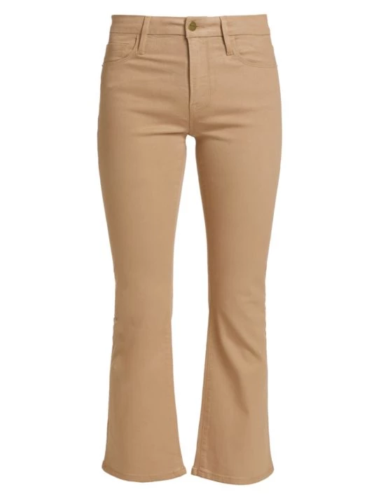 Constructed of coated stretch denim, these cropped boot-cut jeans are cut in a mid-rise.