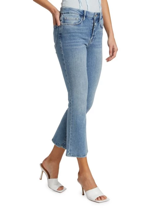 A cropped version of Frame’s classic Mini Boot silhouette, these mid-rise jeans are fitted through the hip and high, flaring into a boot-cut leg. This style is crafted of light-stretch denim.