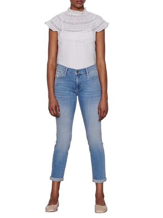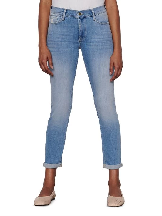 These effortlessly chic stretch-denim jeans are styled with a slim fit and mid-rise waist.