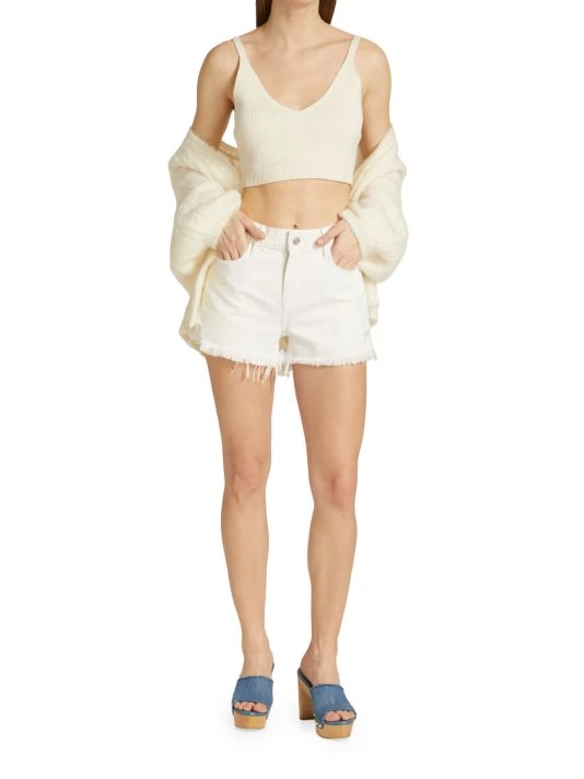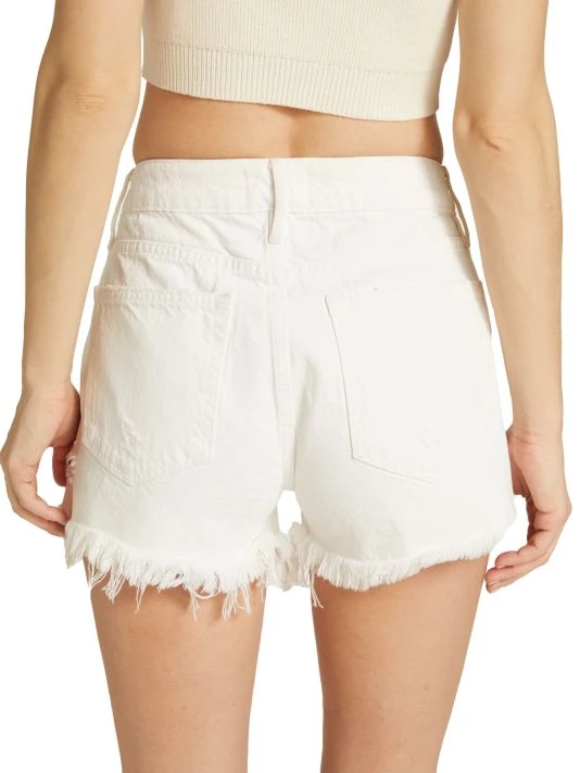 Since 2012, Los Angeles-based Frame has offered stylish, casual ready-to-wear. The Le Grand Garcon shorts are crafted of denim with frayed hems.