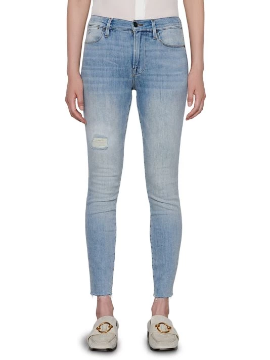 Giving them an edgy look, these flattering skinny jeans are styled with distressed details.