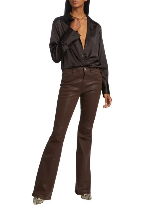 Designed to flatter and elongate the silhouette, Frame’s Le High flare jeans are cut from coated denim to a leather-like finish.