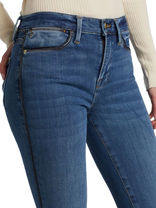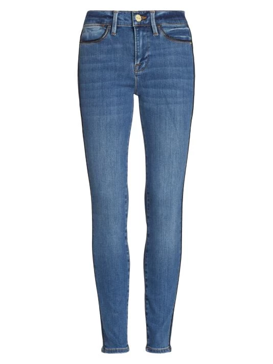 Styled with whiskering details, these skinny jeans feature piping along the pockets and sides.