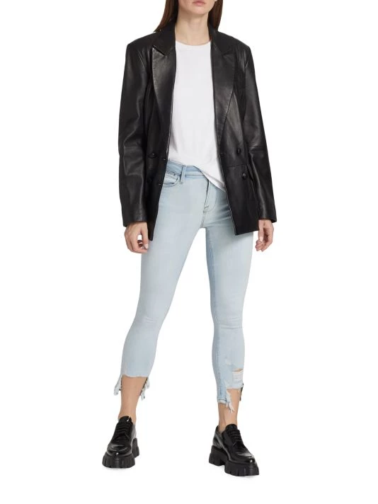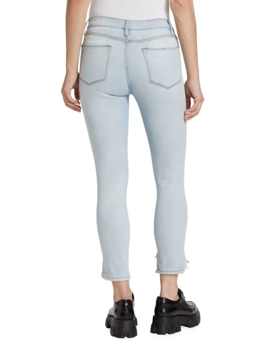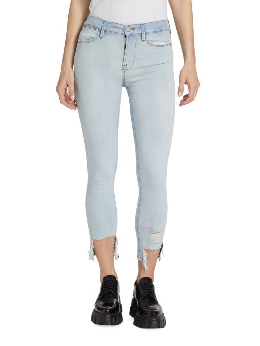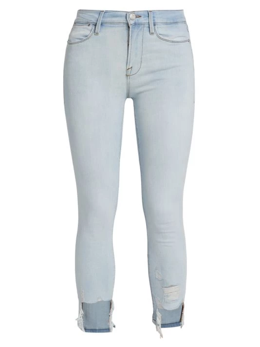 Crafted of stretch denim, this version of the Le High jeans by Frame are cropped in an ankle length with distressed hems.