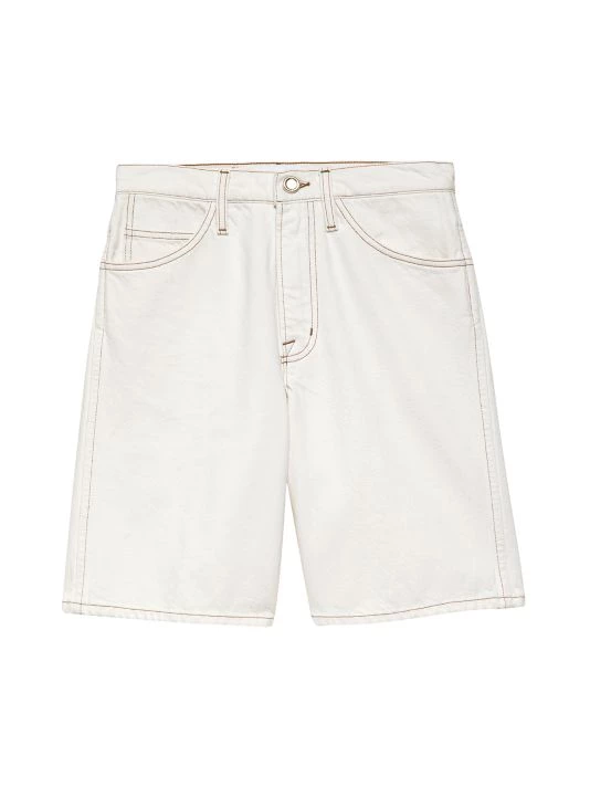 Frame’s Le Italian denim shorts feature a classic Bermuda silhouette with contrast topstitching for dimension.