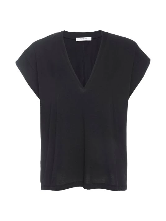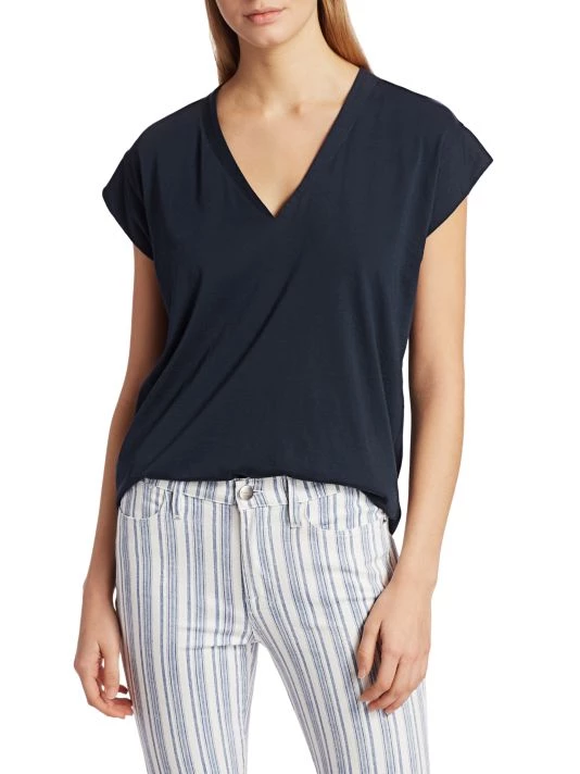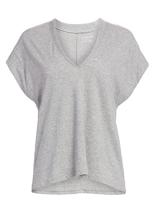 A deep-V neckline and angled dolman sleeves toughen up this pima cotton muscle tee.