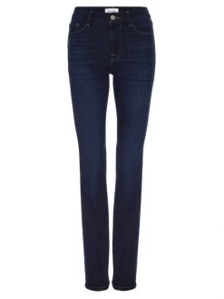 Fitted jeans cut with a traditional bootcut style, features whiskering at the thighs that carry down to the legs.