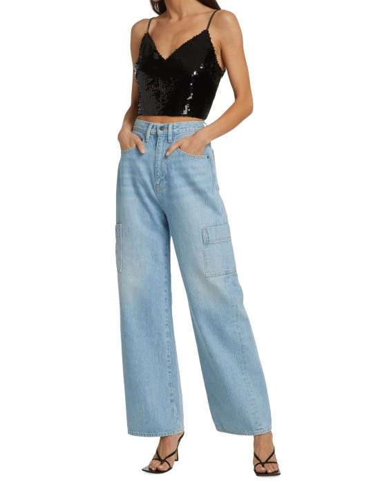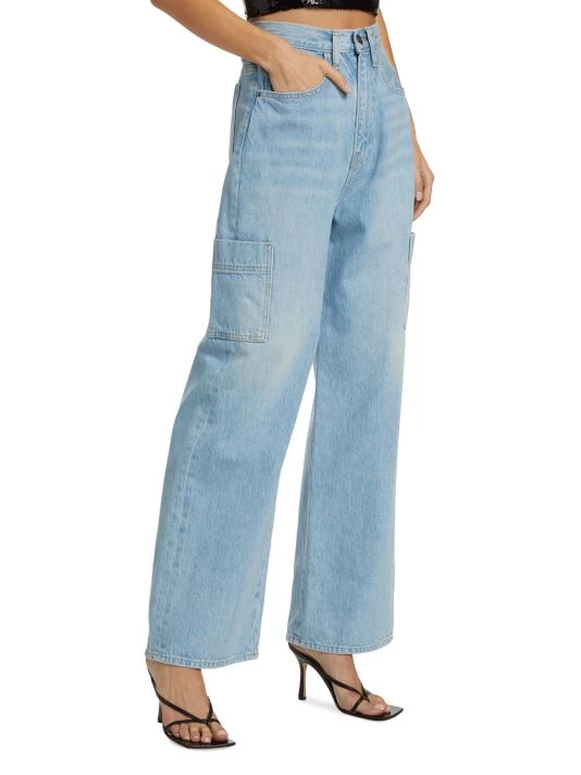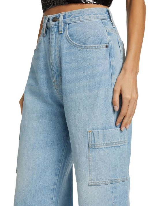 These relaxed, baggy jeans are fashioned with a waist-flattering high rise and leg patch pockets.