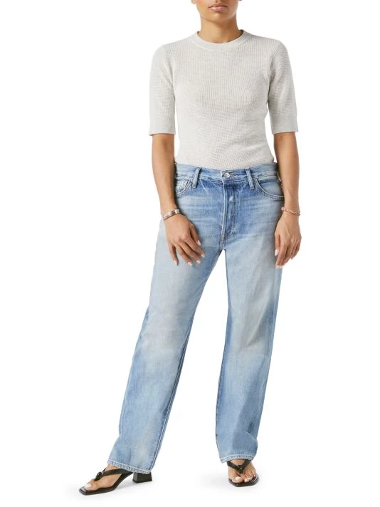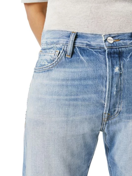 A cropped denim style with classic five-pocket styling and a straight-leg silhouette.