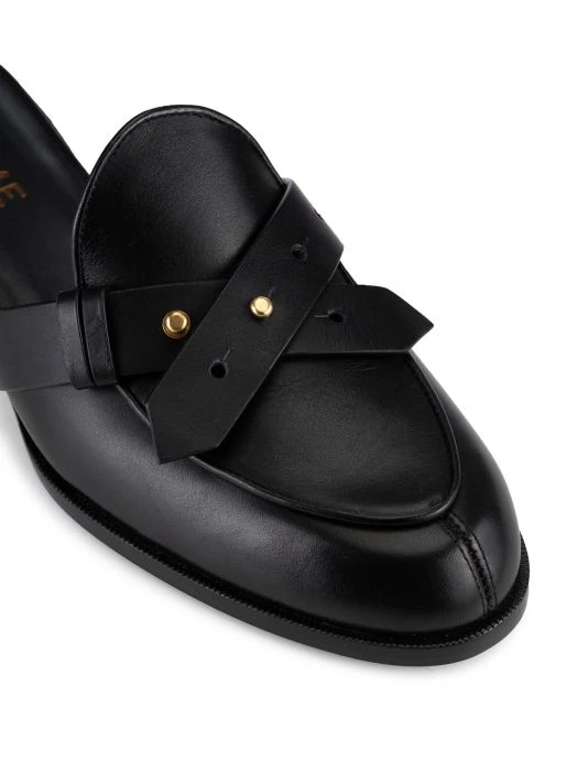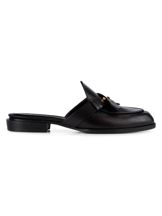 Easy leather loafer slides featuring memory foam pad with goldtone collar stud details at the upper.