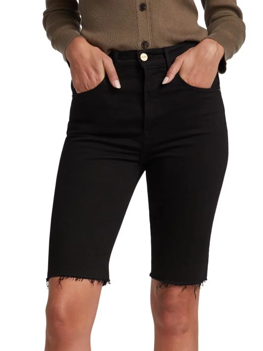 Soft stretch cotton denim shorts with a flattering Bermuda silhouette.