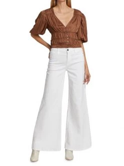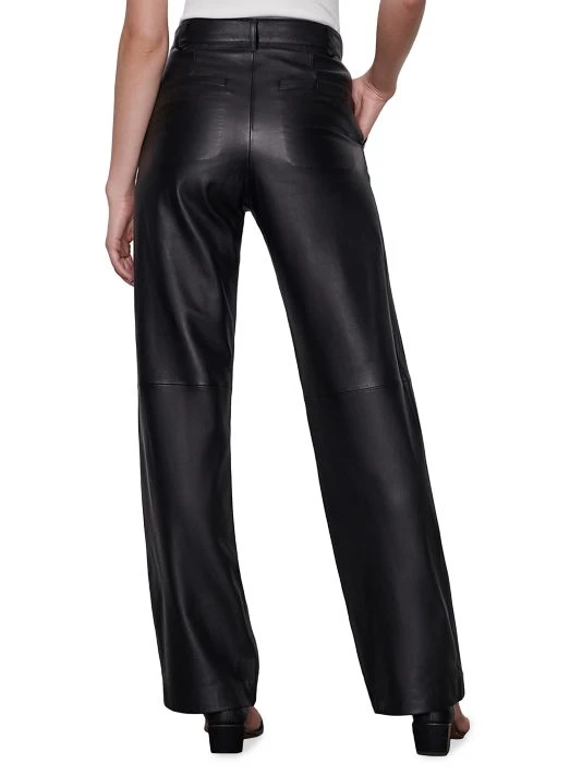 Edgy straight-leg pants crafted of soft leather, features side slit pockets and tailored welt pockets.