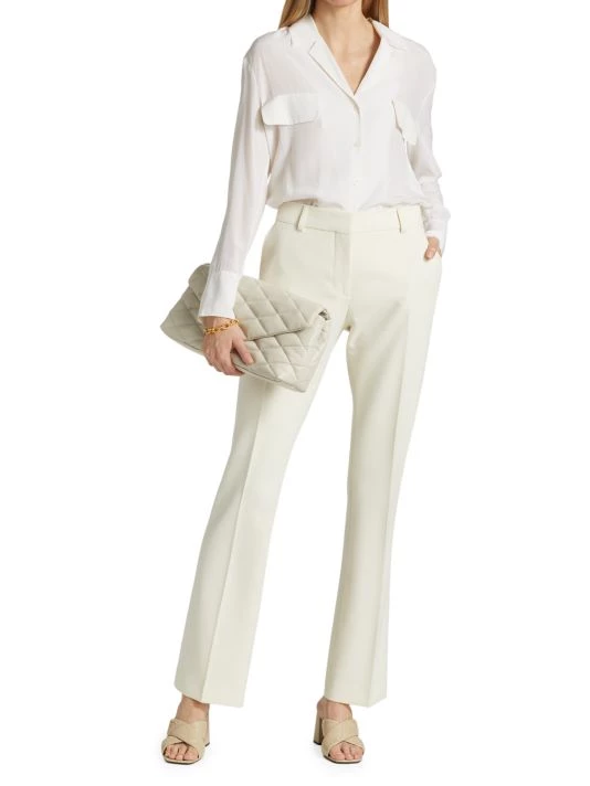 Frame’s beloved Mini Boot silhouette receives a polished update with these trousers. This style is fitted through the hip and thigh, flaring out into a boot-cut leg.
