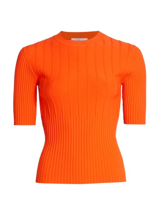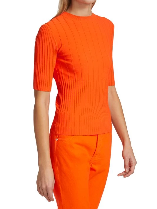 This short-sleeve sweater is designed in a mixed rib-knit.