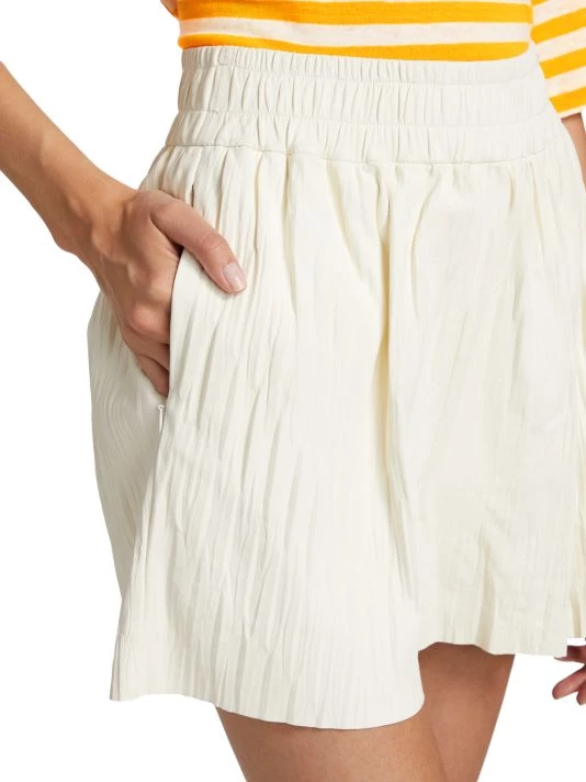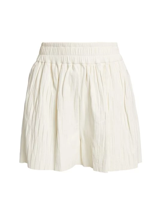 Frame’s pleated shorts are crafted from soft leather and cut to a flattering high-waist silhouette.