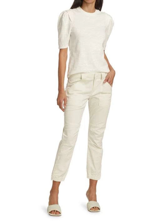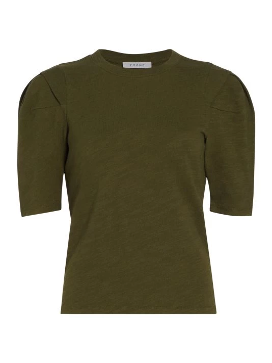 A short pleated puff sleeve accents this classic cotton tee.