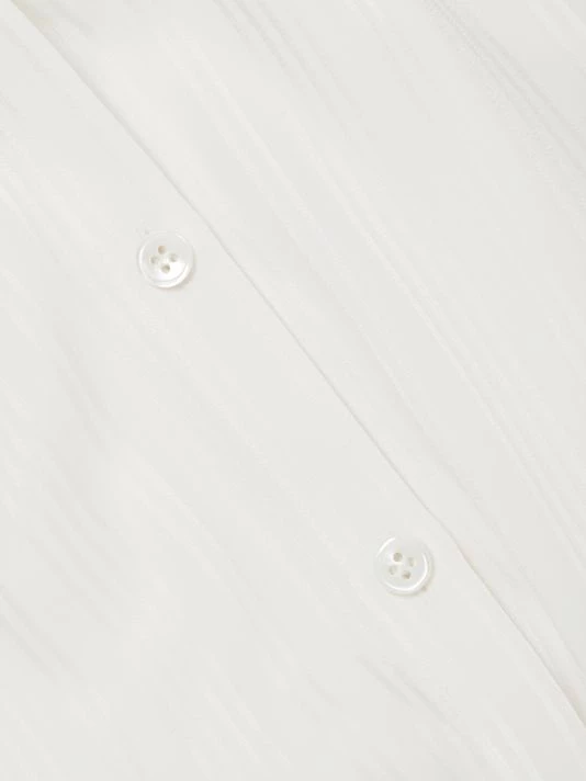This elegant blouse is crafted of shirred silk and features a tie-accented crewneck.