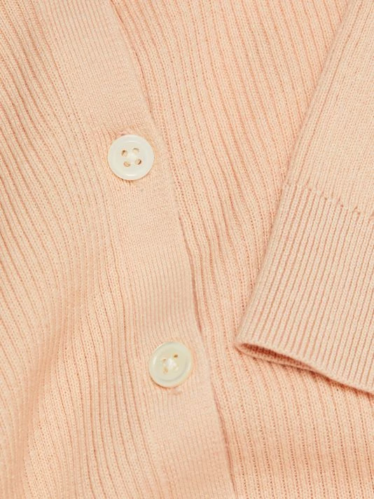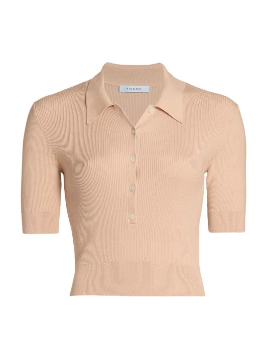 Frame’s short-sleeve polo is crafted of a luxe silk and cotton blend. This sweater is designed in a rib-knit with a point collar.