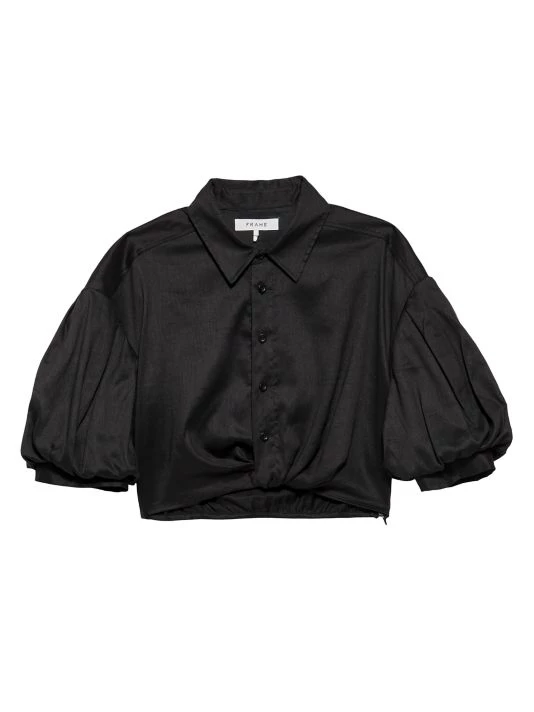 Crafted from stretch linen, Frame’s cropped button-up shirt features a twisted hem.