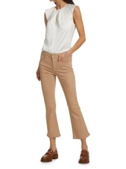 Frame Le Crop Mid-Rise Stretch Coated Mini Boot-Cut Jeans Toasted Almond